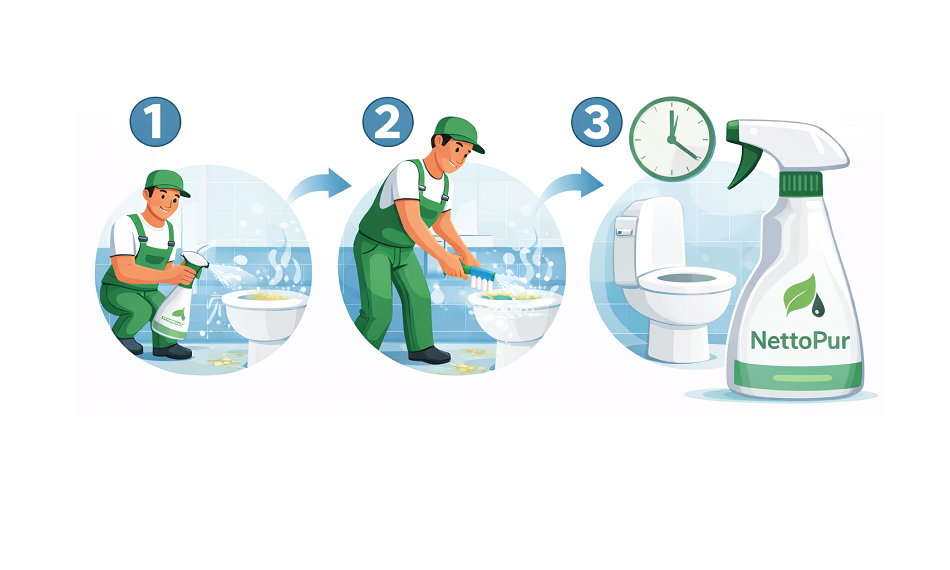base des WC, joints, angles, plinthes, murs bas, recoins ou zones régulièrement touchées.