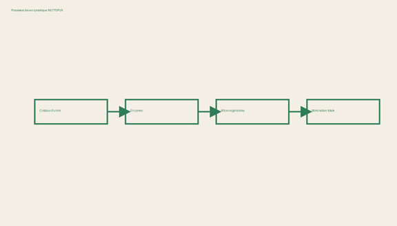 Les enzymes fragmentent les cristaux d'acide urique incrustés dans les matériaux. Les micro-organismes naturels digèrent ensuite ces fragments jusqu'à leur disparition complète.